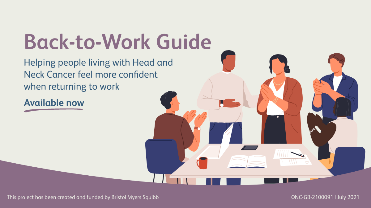 That’s why we partnered with Bristol Myers Squibb and the Head and Neck Cancer Community to develop the Back-to-Work Guide; a co-created resource designed to help people living with Head and Neck Cancer feel more confident when returning to work.