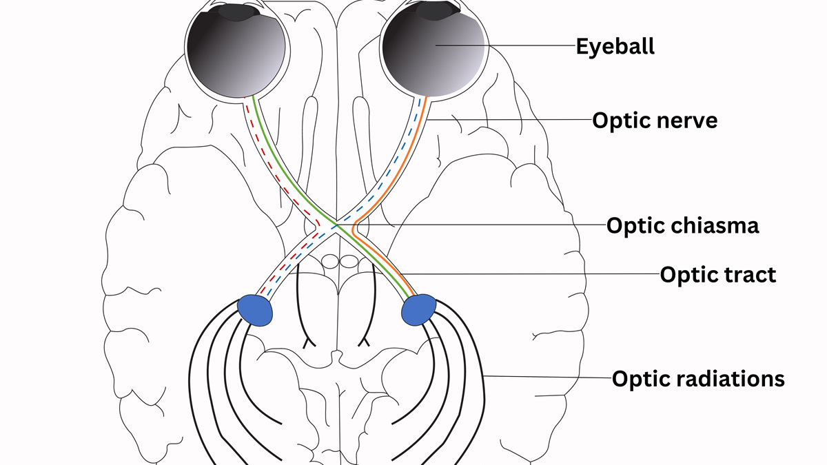 (1) Smith AM, Czyz CN. Neuroanatomy, Cranial Nerve 2 (Optic) [Updated 2022 Nov 7]. In: StatPearls [Internet]. Treasure Island (FL): StatPearls Publishing; 2024 Jan-. Available from: https://www.ncbi.nlm.nih.gov/books/NBK507907/